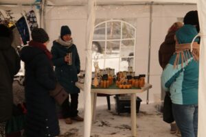 Am 2.12.2023 wurden auf dem Gartengelände, Dorfstraße 7, 14621 Schönwalde-Glien an über 20 Ständen Kunsthandwerk und Leckereien angeboten, wie z.B. Keramik, Holzarbeiten, Handarbeiten, Gefilztes, Malerei, Schmuck, handbemaltes Porzellan und Weihnachtskarten sowie Honig und Marmelade.