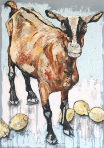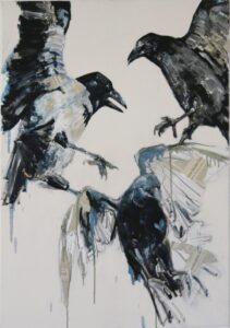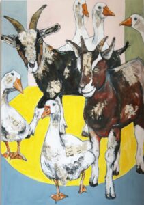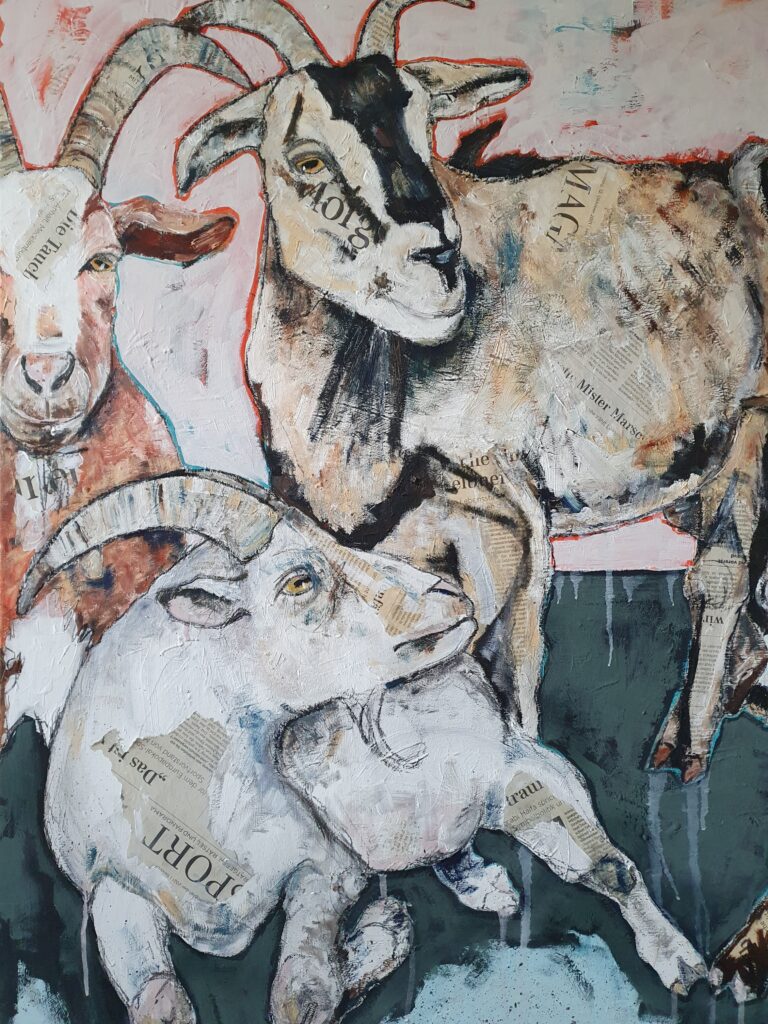 Mit ihren Werken erkundet Meixner die Verbindung zwischen Mensch und Tier und verleiht Krähen, Füchsen oder Ziegen eine unverwechselbare Persönlichkeit. Die Collage-Technik, kombiniert mit Acryl, Öl und Zeichenkohle, dient als Brücke zwischen den Welten – inspiriert von der Natur, die sie ebenso fasziniert.