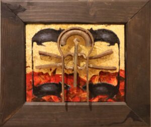 Dr. Hanns Burkhard Hagmann ist Gründungsmitglied des Vereins „kreativ“. Er stellt in der Dorfstraße 7 jetzt zum dritten Mal seine Arbeiten aus, 2002 unter dem Titel “ Die Dinge sind nicht so, wie sie sind, sondern so wie man sie macht“ und 2021 war das Motto „Animalisches und Menschliches“.